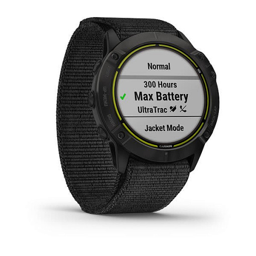 | La Garmin Enduro™ est dotée d'un verre solaire Power Glass™ qui prolonge l'autonomie de la batterie, d'un bracelet en nylon ultra léger, et offre d'autres atouts aux athlètes les plus endurants. |