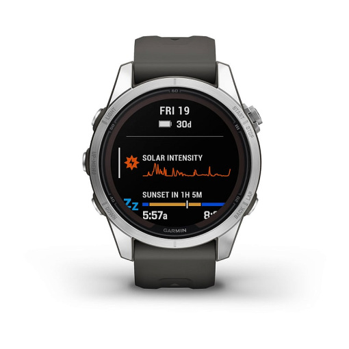 | La fēnix 7S Pro Solar est une montre GPS connectée de petite taille avec verre solaire, suivi continu de l'état de santé et lampe torche LED, qui offre jusqu'à 14 jours d'autonomie. |
