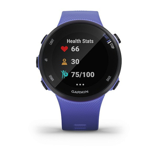 | Vous êtes un coureur, alors entraînez-vous comme un coureur. La petite Forerunner 45S enregistre la fréquence cardiaque à votre poignet et utilise le GPS pour suivre votre allure/vitesse, la distance parcourue, etc. Elle fonctionne avec les programmes d'entraînement adaptatifs gratuits Garmin Coach qui vous fournissent des conseils de coaches professionnels directement à votre poignet. |