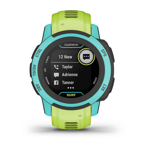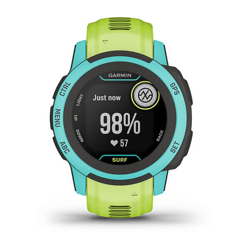 | Instinct® 2S Surf Edition est une montre GPS robuste et connectée de petite taille, dotée de couleurs vives, d'activités dédiées au surf, au kitesurf et à la planche à voile, et bien plus encore. |