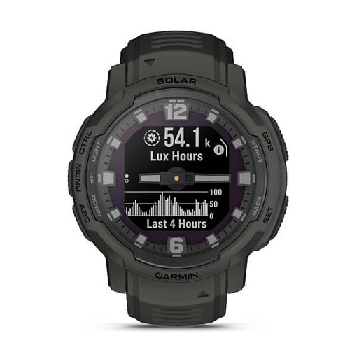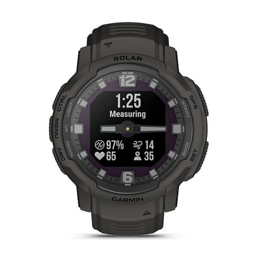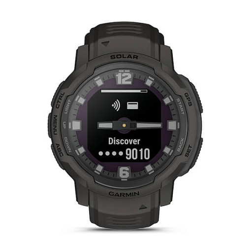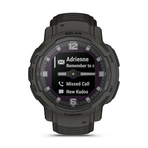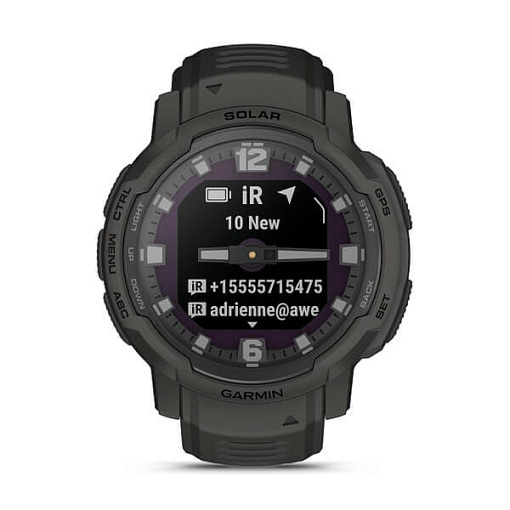 | La Instinct® Crossover Solar est une montre GPS connectée hybride et robuste qui intègre un verre solaire, une autonomie de plusieurs mois, des aiguilles analogiques luminescentes et un écran numérique. |