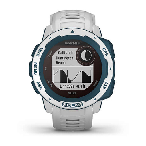 | L'Instinct Solar Surf est une montre connectée conçue pour dompter toujours plus de vagues, avec ses fonctions de surf et son verre à recharge solaire qui offre une autonomie incroyable. |