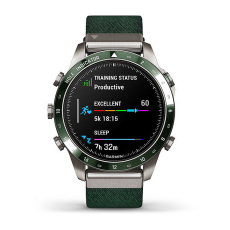 | MARQ® Golfer (Gen 2) est montre connectée d'exception en titane de Grade 5, avec un écran AMOLED tactile réactif, boutons classiques, caddie virtuel et 42 000 parcours préchargés. |